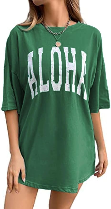 Aloha Women's Casual Short Sleeve Graphic Oversized T Shirt Loose Letter Print Tee Top Blouse